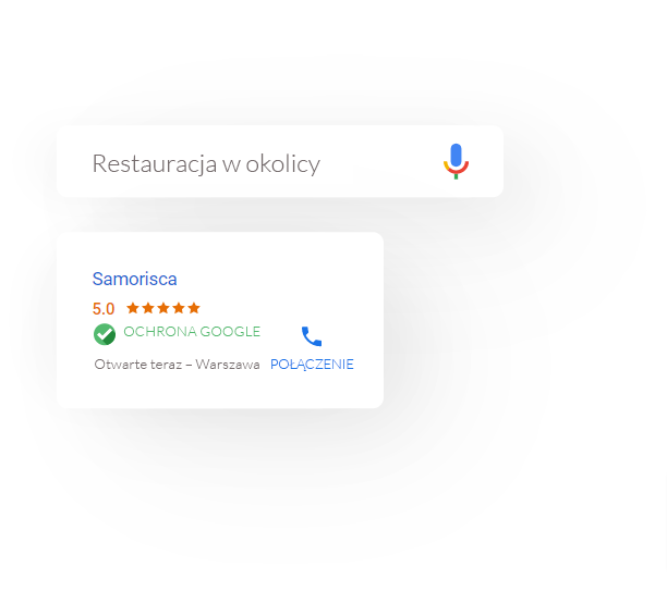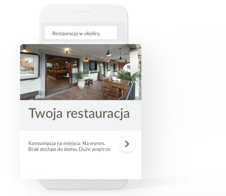 Google dopasowuje Twoją reklamę do wyszukiwanych haseł związanych z Twoją firmą i lokalizacją. Na przykład, gdy użytkownik wyszuka w Google frazę „restauracja w pobliżu”, wpis o Twojej firmie pojawi się wśród pierwszych wyników wyszukiwania.