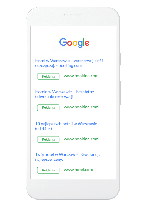 W Google ludzie szukają atrakcji, miejsc wartych odwiedzenia i rzeczy do kupienia. Twoja reklama może pojawić się w Google dokładnie wtedy, gdy ktoś szuka Twojego produktu lub usługi.